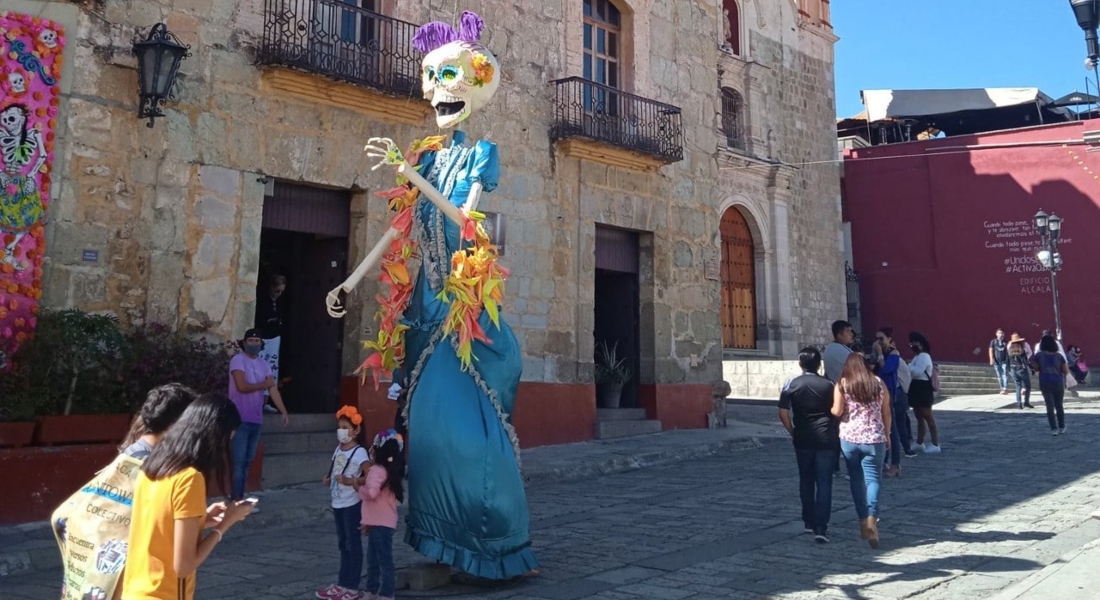 Una exposición de catrinas monumentales y cráneos decorados engalanan la Villa de Mitla, en Oaxaca por las festividades de Día...