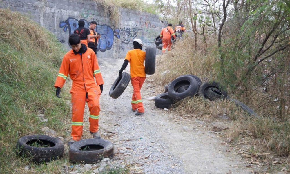 Más de 200 llantas fueron retiradas este lunes 2 de marzo de 2026 del Río Santa Catarina por voluntariado de la Secretaría de Participación Ciudadana, como parte de la campaña “Ponte Nuevo, Ponte Mundial”.